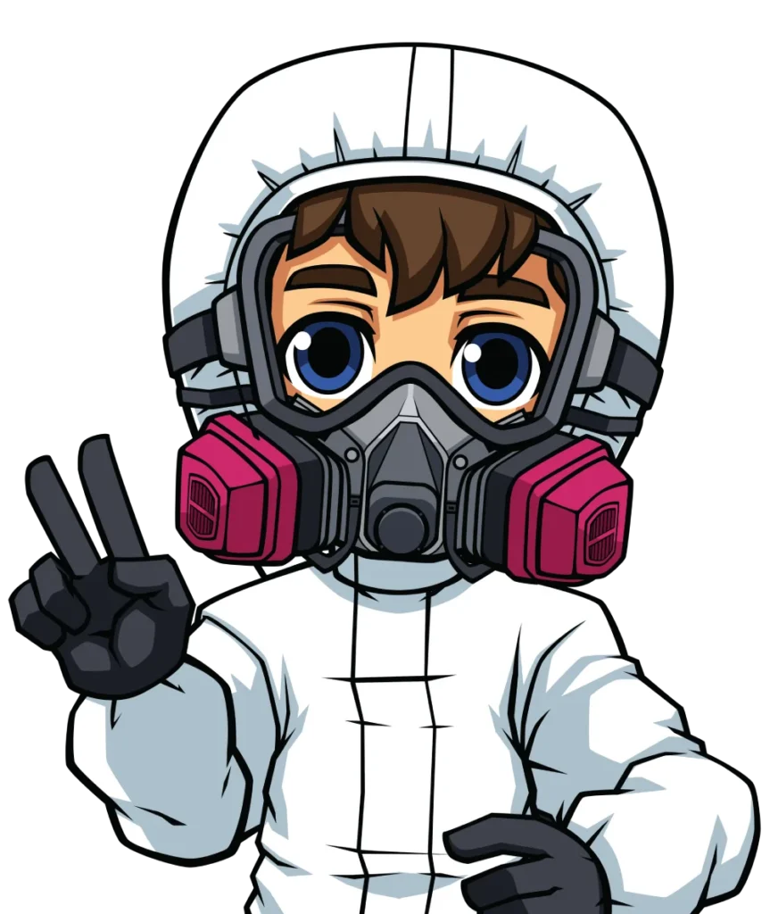 Icky Nikky is the heart of the operation — the leader who keeps his crew motivated, sharp, and ready to take on anything. With his cool demeanor and steady hand, he inspires confidence on every project, no matter how contaminated or chaotic the site may be. The peace sign he flashes isn’t just for show — it’s a reminder that when Nikky’s leading, order and calm always replace stress and panic.
